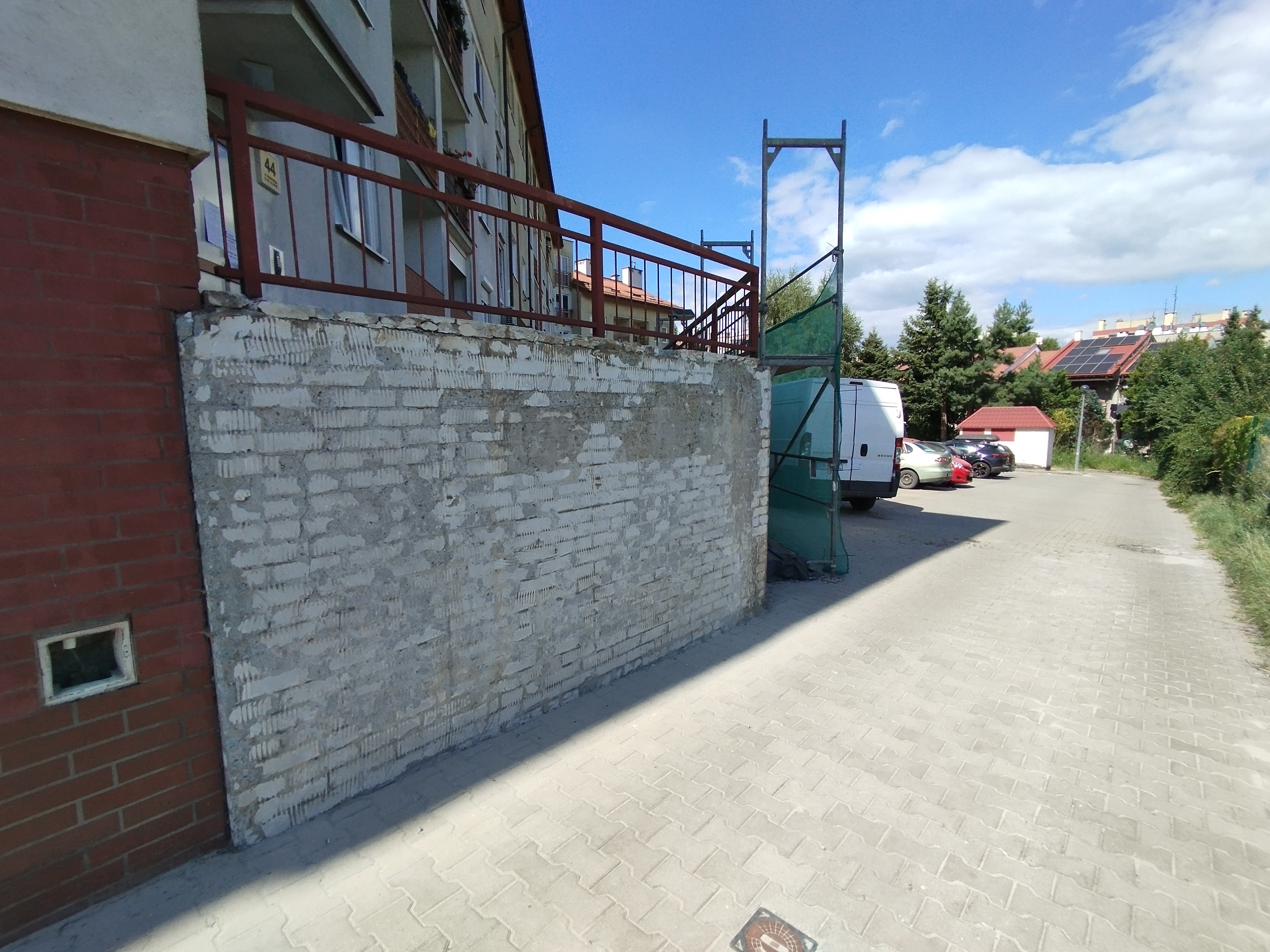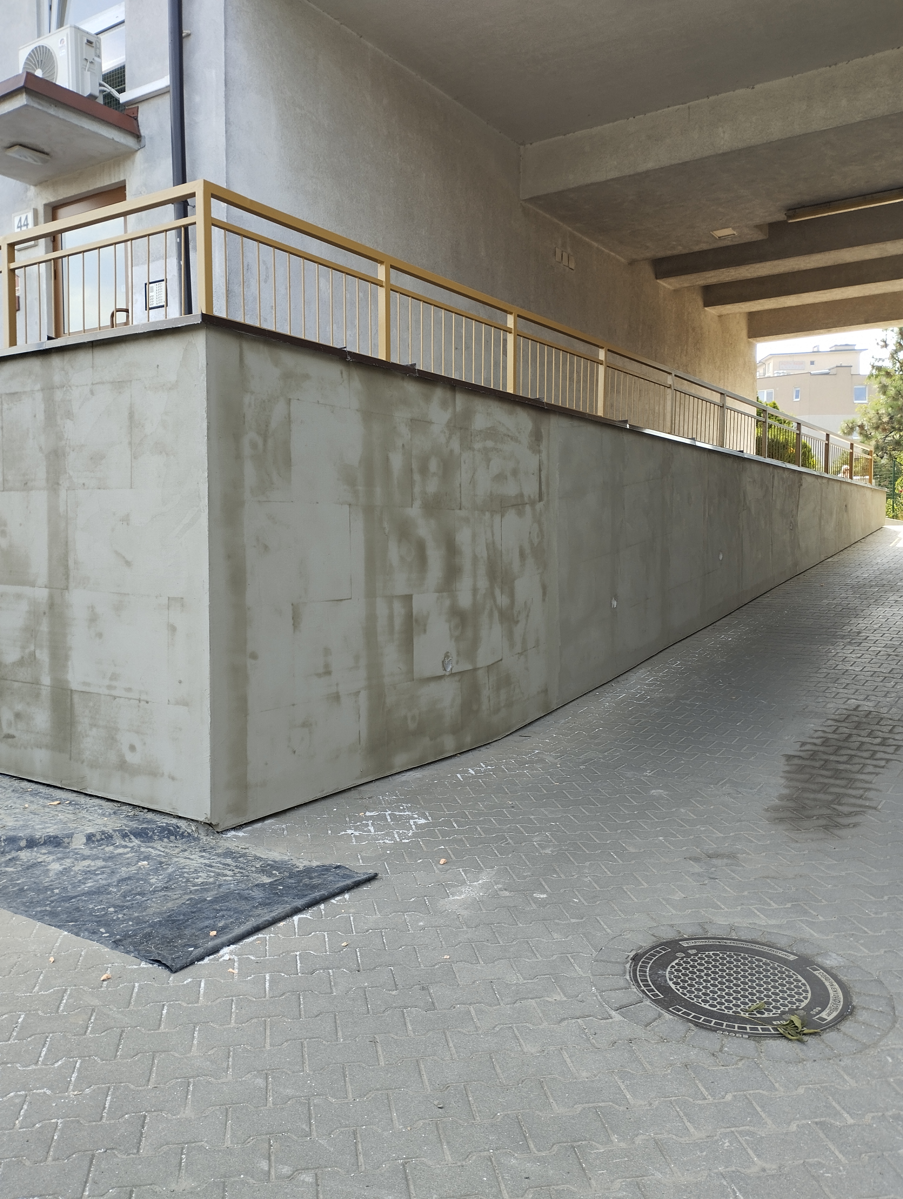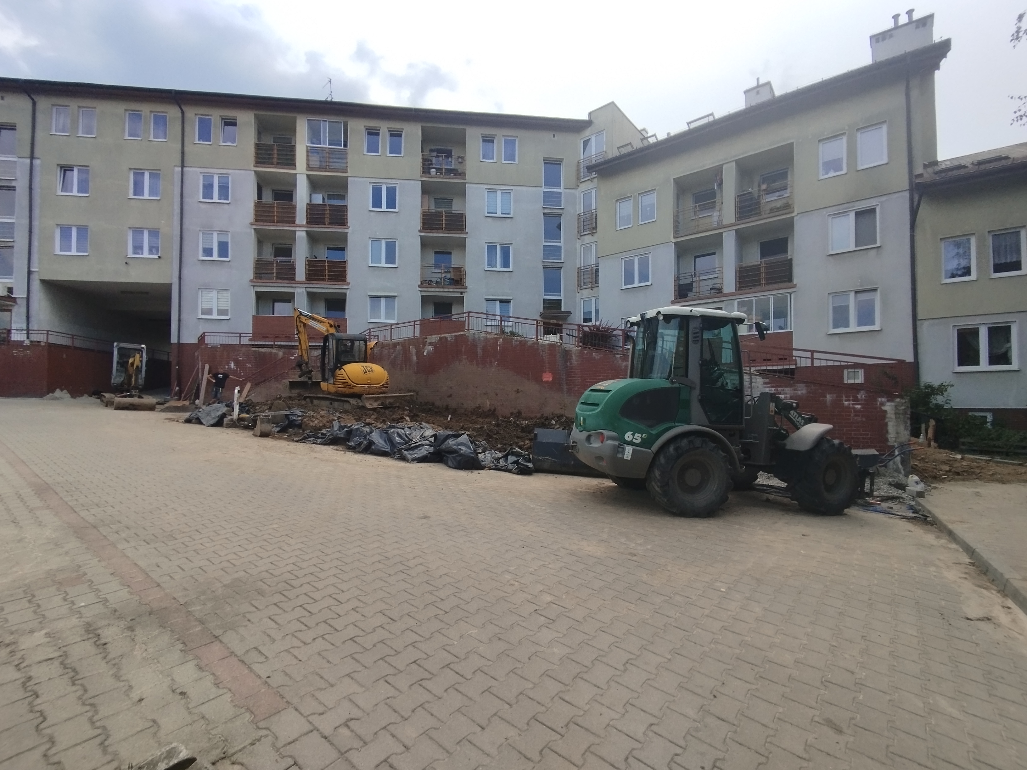 Informujemy, że zakończyliśmy kompleksowy remont murów oporowych wraz z chodnikami przy budynku przy ul. Okulickiego 44. Zakres prac obejmował odkopanie murów, wykonanie hydroizolacji, budowę nowych schodów, odbudowę chodników i dojść do klatek schodowych oraz wykonanie nowej rampy dla wózków.