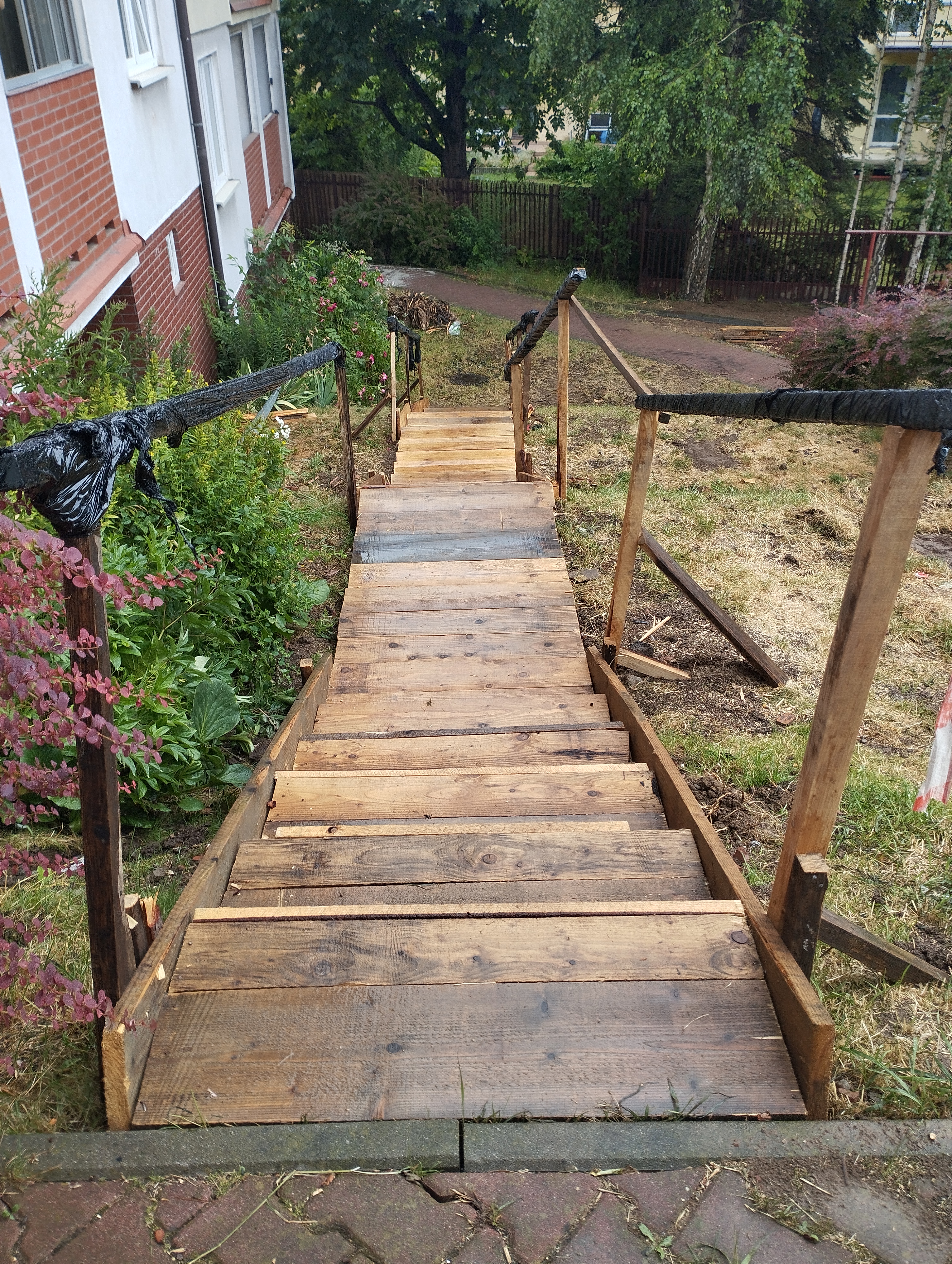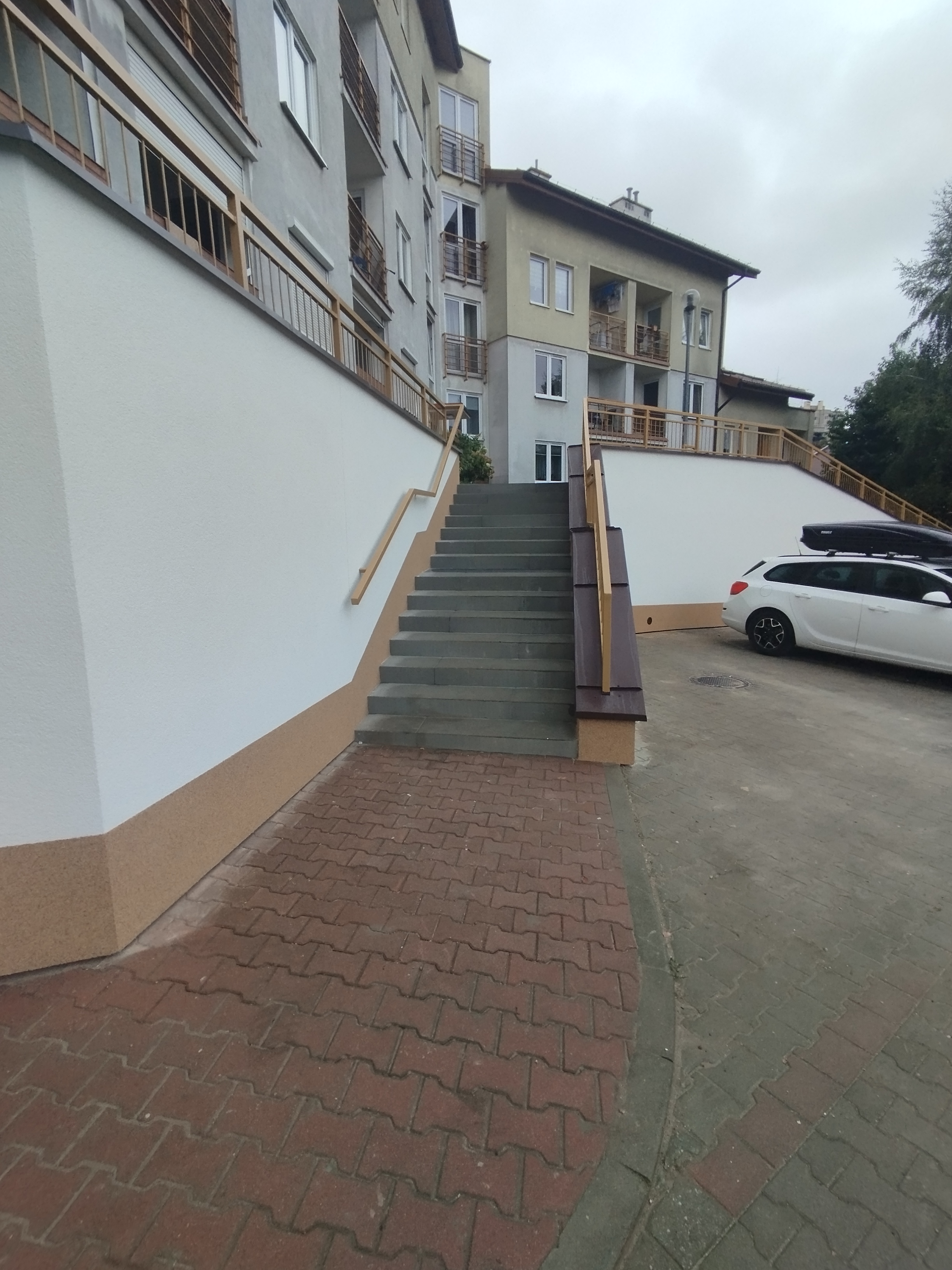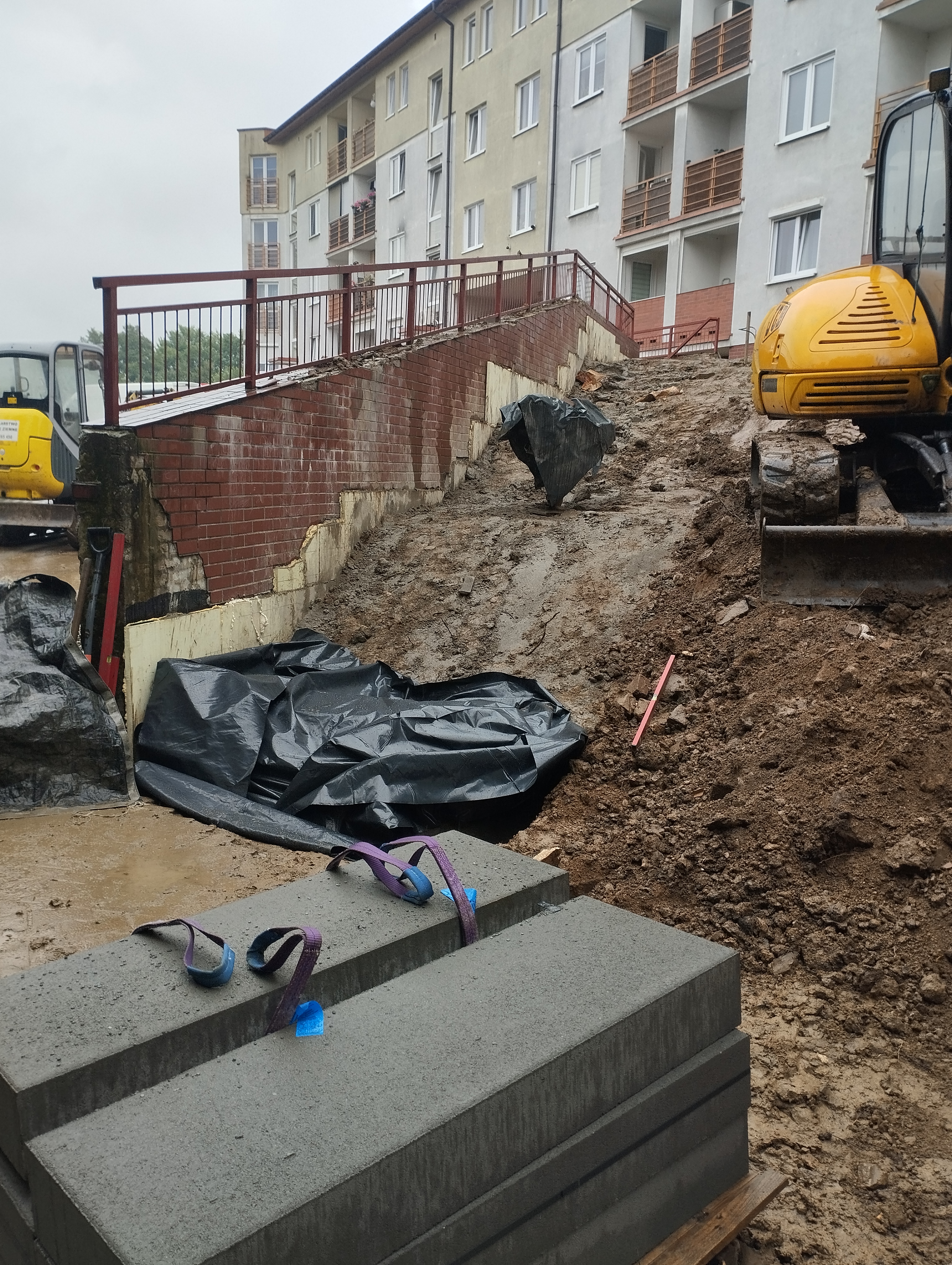 Informujemy, że zakończyliśmy kompleksowy remont murów oporowych wraz z chodnikami przy budynku przy ul. Okulickiego 44. Zakres prac obejmował odkopanie murów, wykonanie hydroizolacji, budowę nowych schodów, odbudowę chodników i dojść do klatek schodowych oraz wykonanie nowej rampy dla wózków.