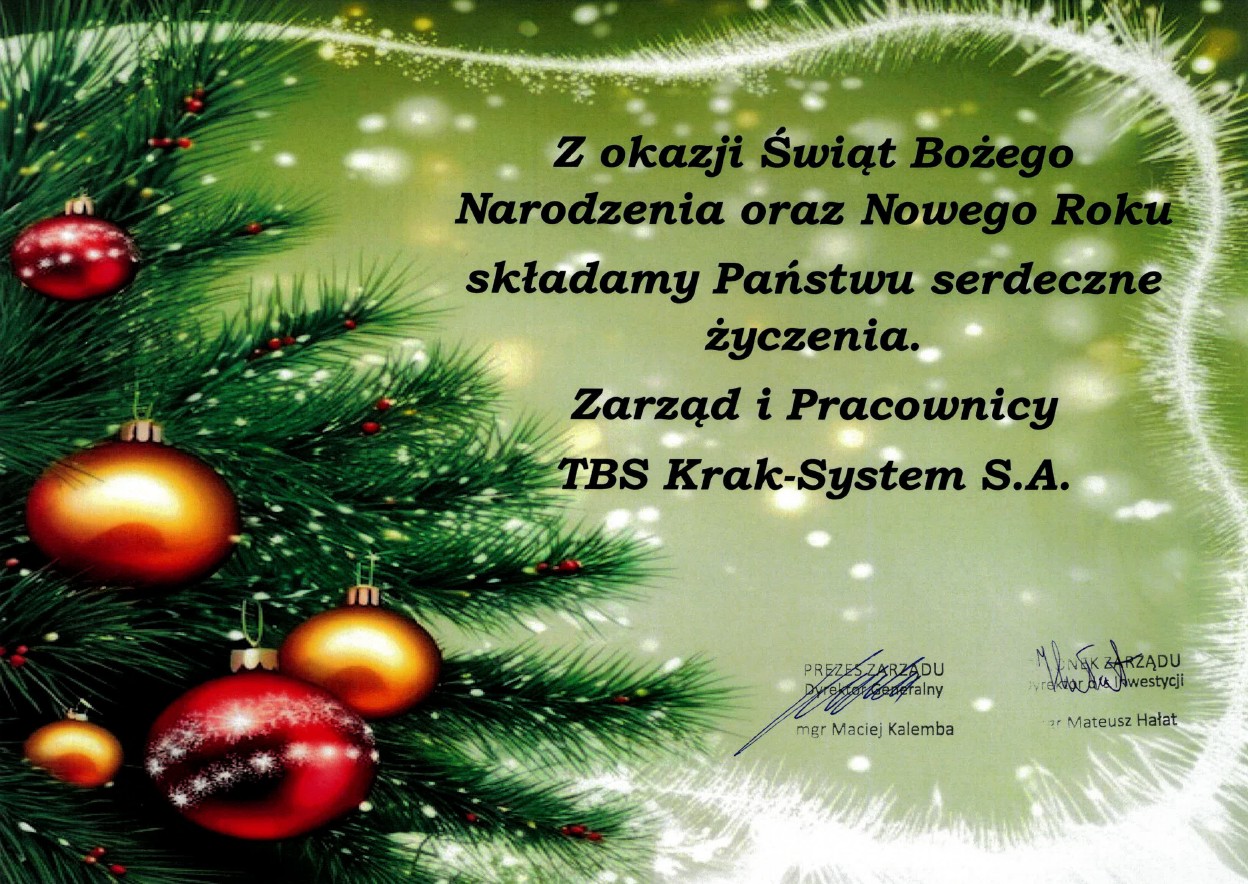 TBS Krak-System S.A. – Aktualności – Bez kategorii – Życzenia świąteczne